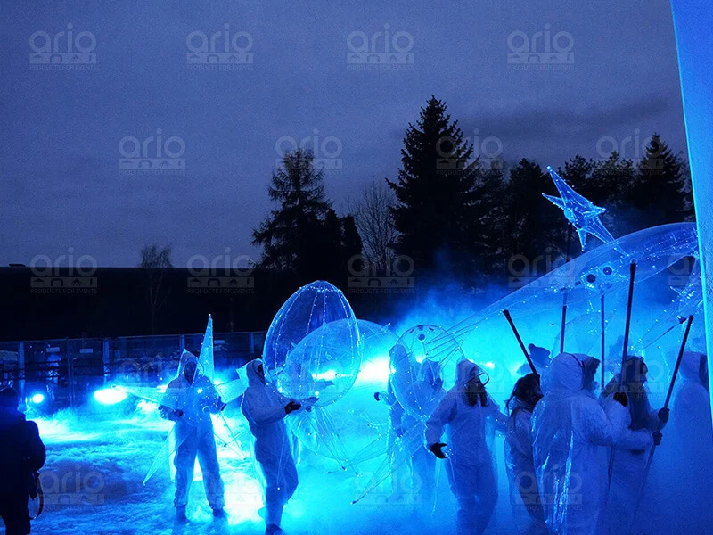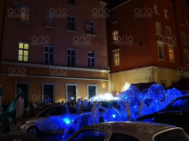 Balony zostały wyposażone w innowacyjne oświetlenie LED, zdalnie sterowane, które podkreślało ich przejrzystą powłokę, tworząc niezwykły efekt w nocnym krajobrazie Wrocławia. To widowiskowe połączenie światła i formy przykuło uwagę uczestników, dodając magii i wyjątkowości atmosferze tego niezapomnianego wydarzenia. Było to nie tylko widowisko wizualne, ale także niepowtarzalne doświadczenie zanurzenia się w kulturze i sztuce, której stolicą Wrocław z dumą się stał.
